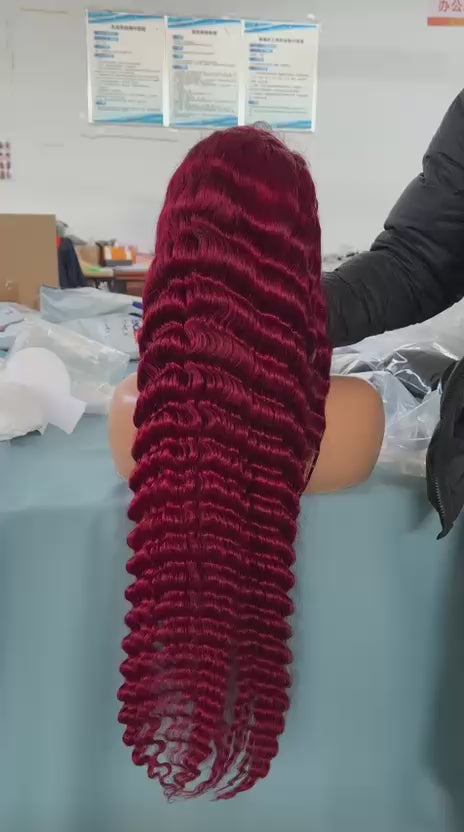 Make a statement with the perfect fusion of exotic texture and bold color. Our 99J Burgundy Deep Wave Wig features a tight, uniform curl pattern that provides incredible volume and a "wet-to-dry" versatility. The deep wine-red hue adds a layer of sophistication, creating a look that is both fierce and elegant.